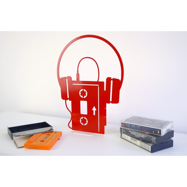 Le « Walkman » ou baladeur, qui a fait son incursion dans les années 80, était à l’époque synonyme de liberté, de modernité, d’indépendance. Son design très marqué et sa couleur vive positionnent cet élément comme un objet d’appartenance à une certaine « way of life ». Andréas Pavel véritable inventeur du baladeur (1977) lui donne ici son prénom.